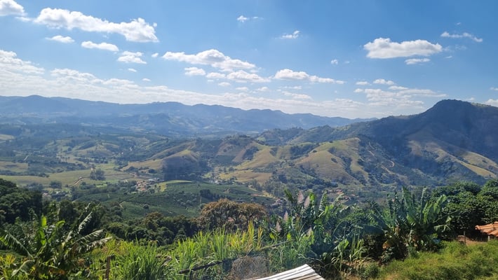 Wir treffen Marina und Pedro am Morgen und fahren 150km in die Gegend von Andradas. Dort in der Gegend wird viel Wein produziert und die Gegend wird zunehmend trockener. Als wir Ozório Santos und seine Frau auf dem Sitio erreichen ist die Sonne schon sehr stark. Der erster Eindruck ist: das ist sehr viel Kaffee, der hier auf der Fläche trocknet. Wir werden herzlich begrüßt und bekommen Kaffee, der hier kultiviert und geröstet wurde und selbstgemachten Käse mit selbstgebackenem Brot. So lecker!