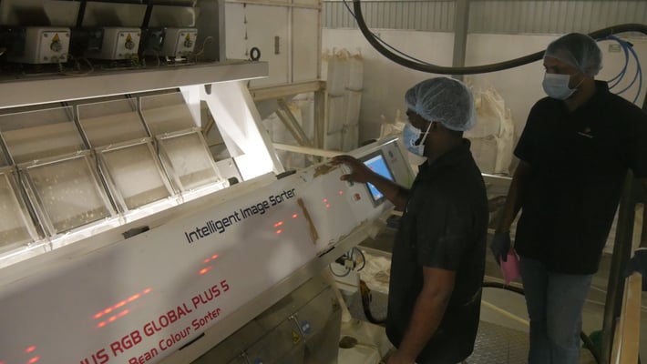 Das Landschaftsbild war noch einmal ein ganz anderes als in Wayanad, es ist richtig bergig und neben Kaffee wird hier an den steilen Hängen vor allem Tee angebaut. Die Unternehmensstruktur von MASS unterscheidet sich im Wesentlichen von denen Strukturen von O. Wayanad. MASS selbst ist eine kleinbäuerliche Kooperative, dessen Aufgabe neben der allgemeinen Unterstützung und Bildung der Mitglieder, der Ankauf und die Verarbeitung des Kaffees bis zur getrockneten Bohne (gewaschener Kaffee) bzw. getrockneter Kirsche (natural) ist. Ab da übernimmt Plantrich, quasi der Mutterkonzern von MASS. Der Besuch hat vor allem den Größenvergleich zwischen O. Wayanad und MASS/Plantrich gezeigt. Neben Farmbesuchen lag der Hauptaspekt auf dem Besuch der neuen Verarbeitungsfabrik von Plantrich. Hier werden die getrockneten Bohnen bzw. Kirschen zu dem finalen Exportprodukt weiterverarbeitet, das bedeutet in mehreren Stufen gereinigt und nach Größe sowie Qualität sortiert. Erst dort wurde eindeutig, wieviel größer hier alles ist. Durch die technische Komplexität war alles sehr effizient und professionell, wodurch in der Verarbeitungsfabrik aber auch etwas das Familäre verlorenging - Plantrich ist vielmehr ein klassisches Unternehmen. MASS hingegen als selbstverwaltete kleinbäuerliche Kooperative weist viele Gemeinsamkeiten zu O. Wayanad auf. Je weiter man sich in Richtung Farmebene bewegt, desto geringer werden die Unterschiede. Ich persönlich fand es beeindruckend und erkenntnisreich diese Kooperative im direkten Anschluss zu besuchen, aufgrund meiner technischen Berufsausbildung vor allem die Kontraste auf technischer Ebene. Ich freue mich auch, dass wir MASS als zusätzliche Partnerschaft gefunden haben, denn Sie machen vor allem auf Kooperativenebene eine super Arbeit und sind eine gute Ergänzung.