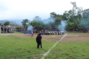 Nachdem wir seine Parzelle ausgiebig besichtigt hatten, lud er uns noch ein zusammen das Fußballspiel zu sehen, was ein echtes Spektakel war. Die Mannschaften wurden mit Böllern und einer Parade